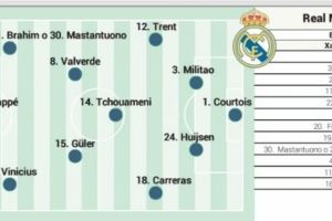 前锋:迪亚斯/马斯坦托诺、姆巴佩、维尼修斯